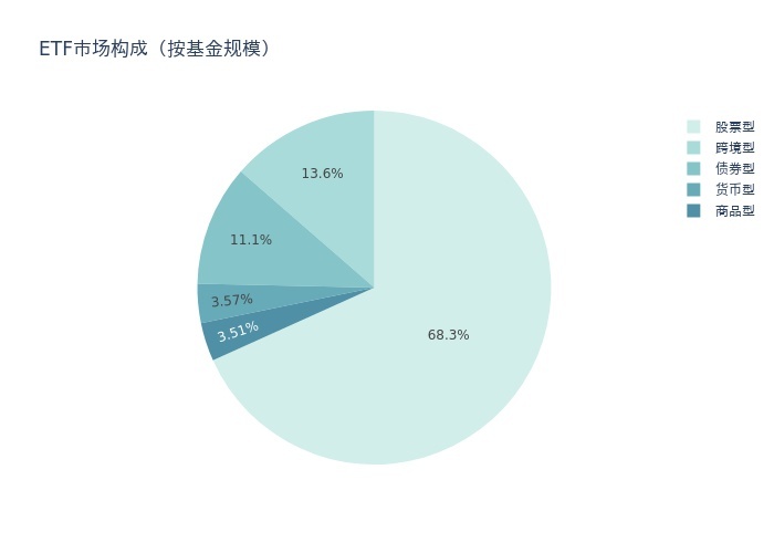 基金规模方面,上周ETF市场总规模达到45347.71亿元,较前一周增加1250.26亿元。其中,股票型ETF为30953.21亿元,债券型ETF为5014.71亿元,货币型ETF为1619.45亿元,商品型ETF为1593.52亿元,跨境型ETF为6166.82亿元。