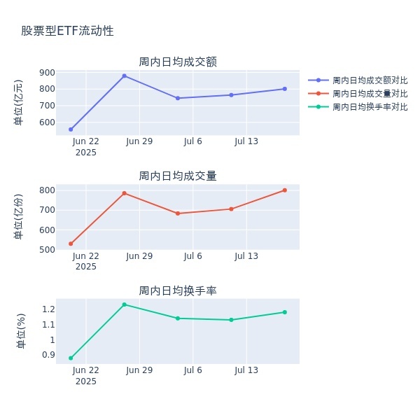 流动性方面,上周股票型ETF市场日均成交额增加4.9%,日均成交量增加13.6%,换手率增加0.05%。